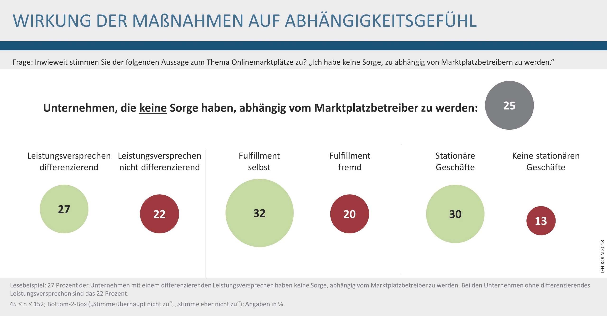 Laut der neuen Studie „Onlinehändler im Spannungsfeld von Wachstum und Marktkonzentration“ von IFH Köln und DHL hat bereits jetzt jeder dritte Online-Händler das Gefühl, in einem Abhängigkeitsverhältnis zu stehen. Mehr als die Hälfte sorgt sich davor, künftig zu abhängig von Marktplatzbetreibern zu werden. Eine erste Maßnahme zum Erhalt der Unabhängigkeit besteht in Aktivitäten außerhalb des Marktplatzes. Ansatzpunkte sind die Kundenorientierung, beispielsweise durch ein klares Leistungsversprechen und die Nutzung von Kundendaten für eine direkte und individuelle Ansprache sowie die Sortimentsoptimierung.