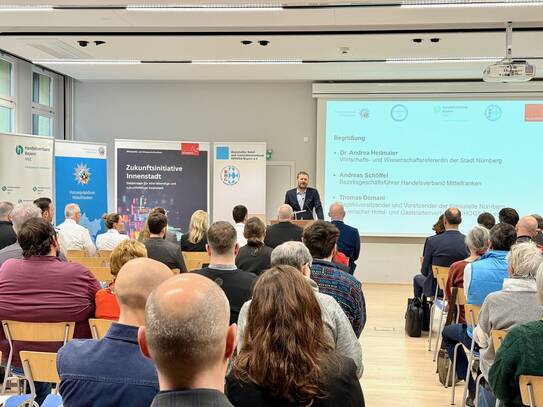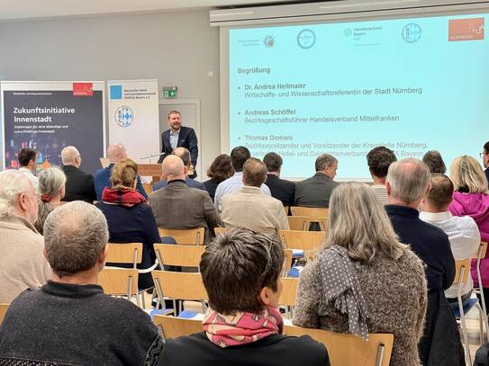 Mit großem Interesse und reger Beteiligung fand am Donnerstag, 5. Februar 2026, die Veranstaltung „Sicherheitsforum Innenstadt“ statt. Zur Veranstaltung hatten das Wirtschafts- und Wissenschaftsreferat sowie das Direktorium Bürgerservice, Digitales und Recht der Stadt Nürnberg gemeinsam mit dem Handelsverband Bayern, dem Bayerischen Hotel- und Gaststättenverband und dem Polizeipräsidium Mittelfranken Unternehmen aus Handel, Handwerk und Gastronomie eingeladen.