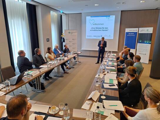 Einige der drängenden Themen wurden wir in zwei Kurzvorträgen aufgegriffen, um im Anschluss gemeinsam Forderungen und Ansätze für die Stärkung des schwäbischen Handels zu entwickeln, die uns im Gespräch mit der kommunalen Politik zusätzliche Argumente und Ansätze liefern können.